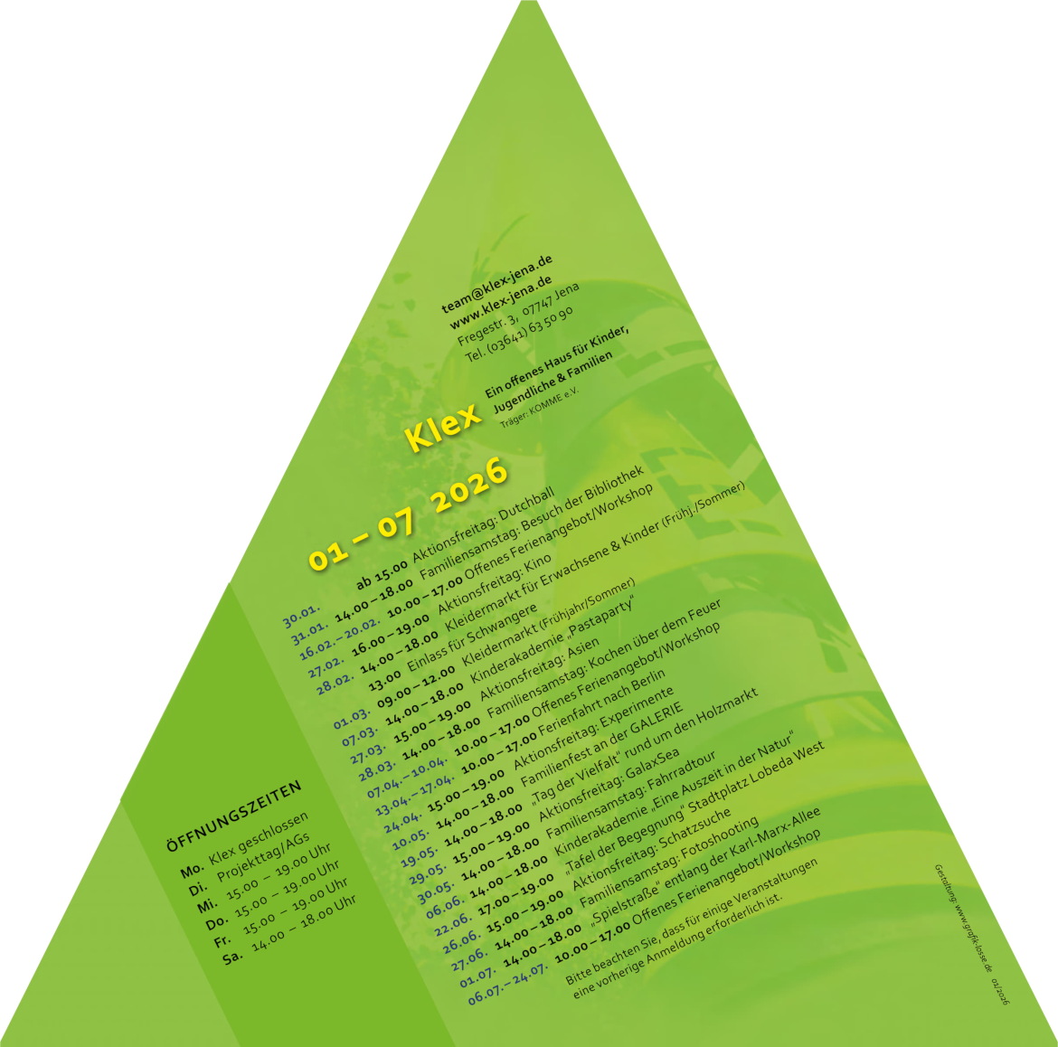 - 16.02. bis 20.02. 10.00-17.00 Offenes Ferienangebot/Workshop
